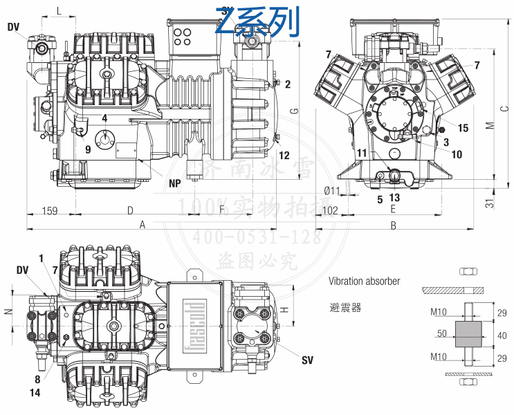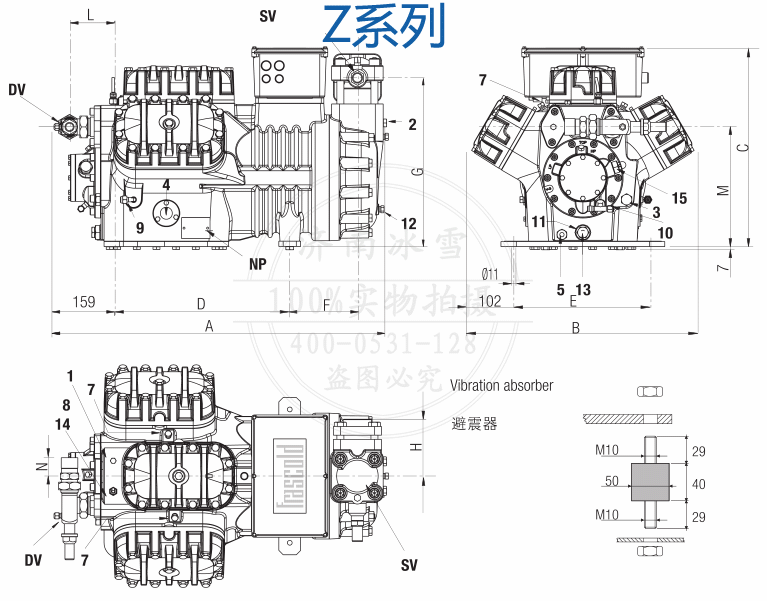 批發零售Frascold/富士豪半封閉活塞壓縮機Z50-154Y,額定功率50HP,最大功耗36.8Kw,意大利原裝進口,假一罰十。